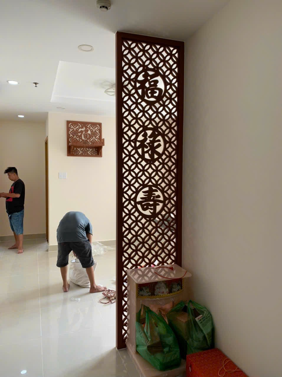 - 2.6 Vách ngăn giúp cản gió lùa, tránh tình trạng tài khí phân tán, từ đó hỗ trợ tụ khí, giữ lộc, giúp công việc làm ăn của gia chủ thêm hanh thông. Đặc biệt, các hoa văn phong thủy trên vách như hoa sen (tượng trưng cho sự thanh tịnh), cá chép (biểu tượng vượt vũ môn – thăng tiến), tiền vàng (thu hút tài lộc) càng góp phần tăng cường cát khí.